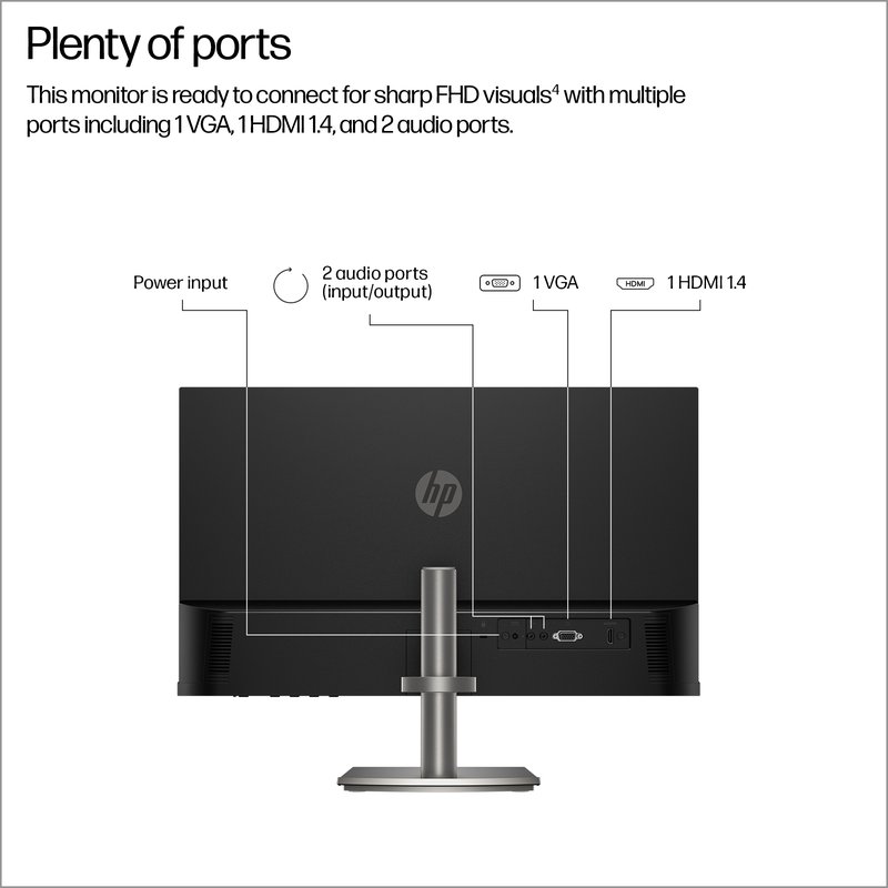 HP 327ph Series 3 Pro FHD Monitor - 27" 1920x1080 FHD 250-nit 100Hz AG, IPS, HDMI/VGA/DisplayPort, speakers, height adjustable/tilt, 3 years (replaces P27h G5)