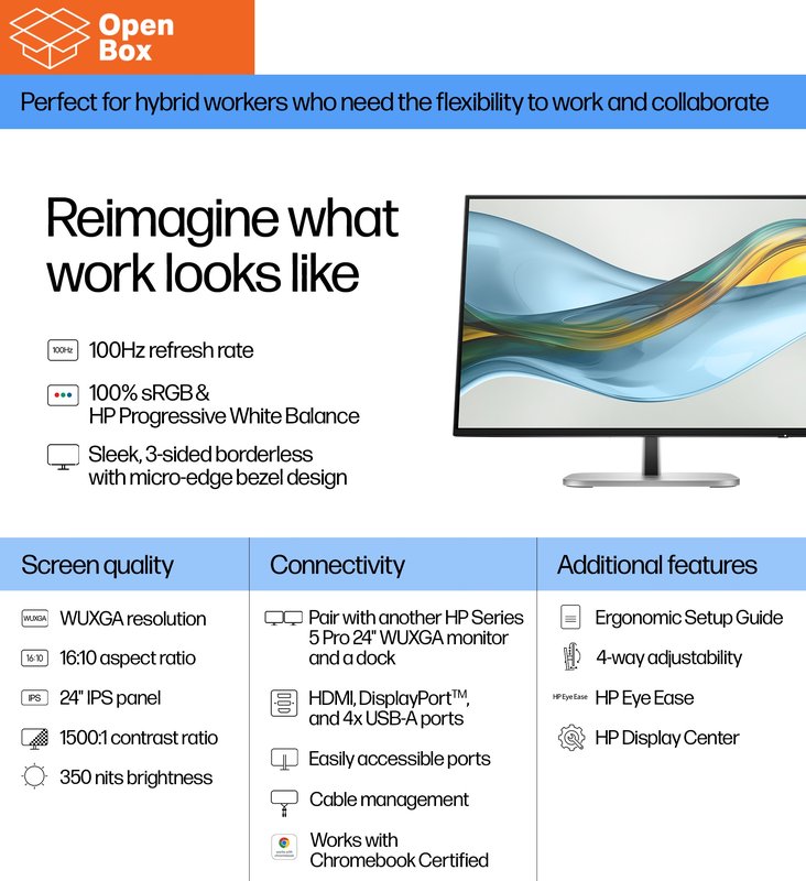 - Get more done on this 24" WUXGA resolution monitor with 100 Hz refresh rate.[1] Experience vibrant, consistent colors with 100% sRGB[1] and HP Progressive White Balance.[2]