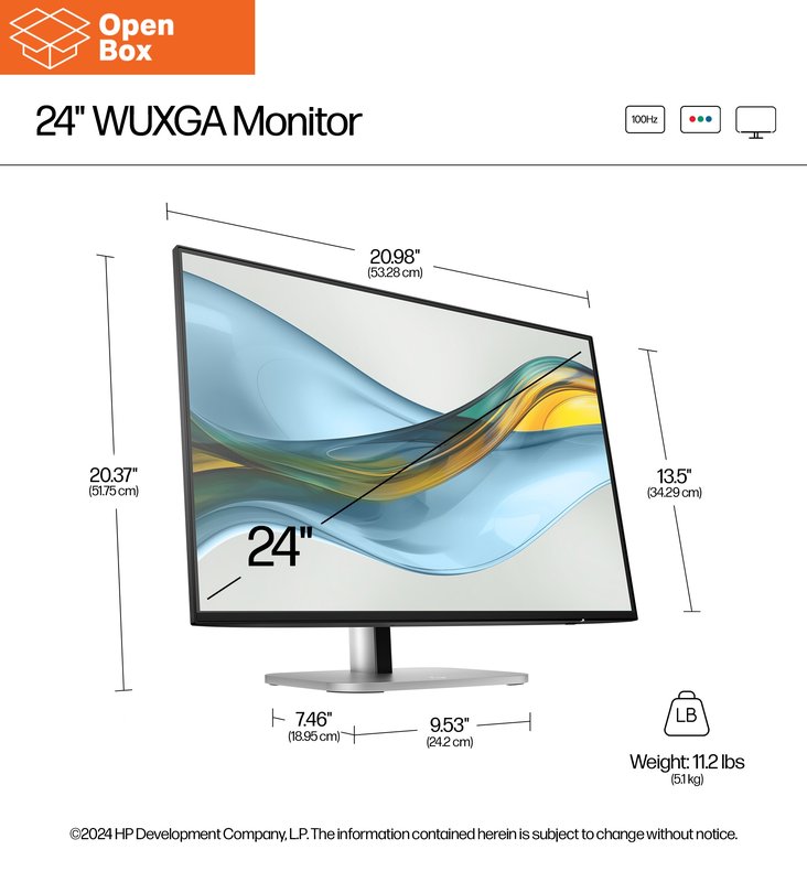 HP 524pn Series 5 Pro WUXGA Monitor - OPENBOX - 24" 1920x1200 WUXGA 350-nit 100Hz AG, IPS, HDMI/DisplayPort, 4x USB-A, height adjustable/tilt/swivel/pivot, 3 years (replaces E24i G4)