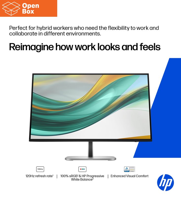 - Accelerate your work on this 27" FHD monitor with 120Hz refresh rate[1] . Experience vibrant, consistent colors with 100% sRGB[1] and HP Progressive White Balance[2].