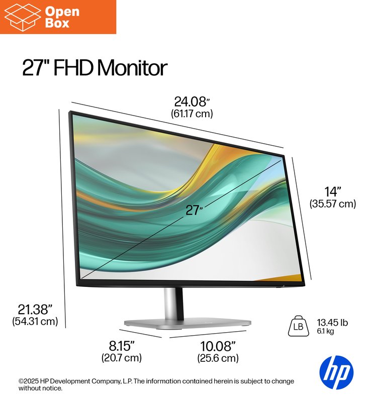 HP 527pf Series 5 Pro FHD Monitor - OPENBOX - 27" 1920x1080 FHD 350-nit 120Hz AG, IPS, HDMI/DisplayPort, 4x USB-A, height adjustable/tilt/swivel/pivot, 3 years (replaces E27 G5)