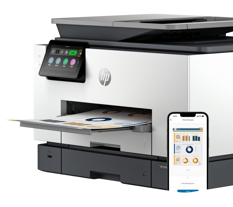 HP OfficeJet Pro 9130b AIO All-in-One Printer - A4 Color Ink, Print/Copy/Dual-Side Scan/Fax, Automatic Document Feeder, Auto-Duplex, Two Trays, LAN, WiFi, 25ppm, 2000 pages per month (replaces OfficeJet Pro 8730)