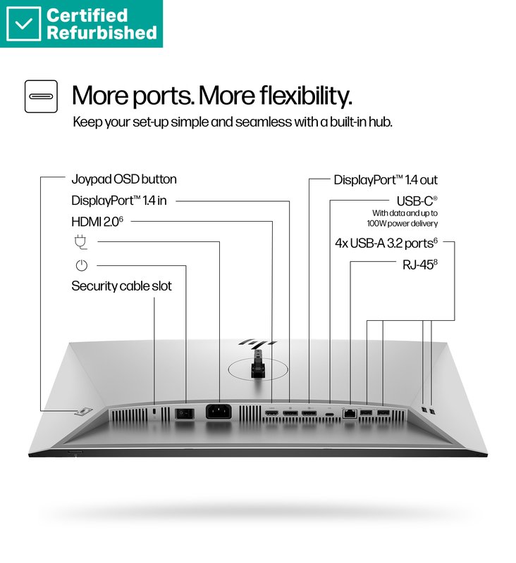 RENEW GOLD HP 527pq Series 5 Pro QHD Monitor - 27" 2560x1440 QHD 350-nit 100Hz AG, IPS, HDMI/DisplayPort, 4x USB-A, height adjustable/tilt/swivel/pivot, 1 years