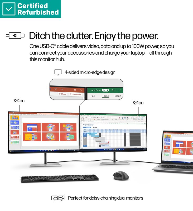 RENEW GOLD HP 724pu Series 7 Pro WUXGA Charging Monitor - 24" 1920x1200 WUXGA 350-nit 100Hz AG, IPS, USB-C(100W)/HDMI/DisplayPort Daisy-Chain, 4x USB-A, RJ-45 LAN, height adjustable/tilt/swivel/pivot, 1 years (replaces Z24u G3)