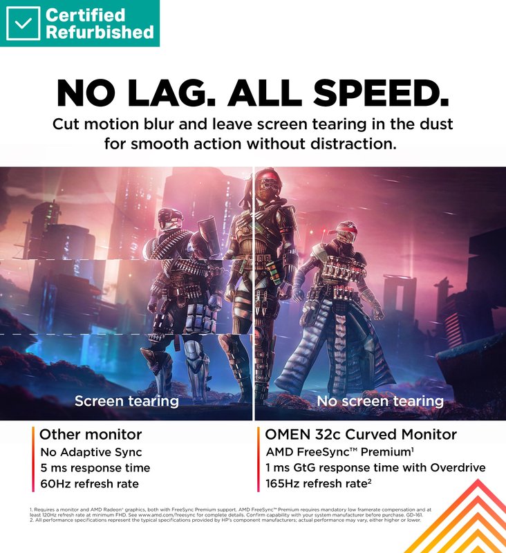 - Frame by frame, experience all the action with 1ms GTG response time with Overdrive and 165Hz refresh rate coupled with AMD FreeSync™ Premium technology[2].