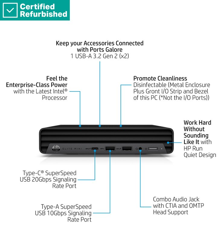 RENEW SILVER HP Elite 800 G9 Mini - i5-14500T, 16GB, 512GB SSD, USB Mouse, Win 11 Pro, 1 years