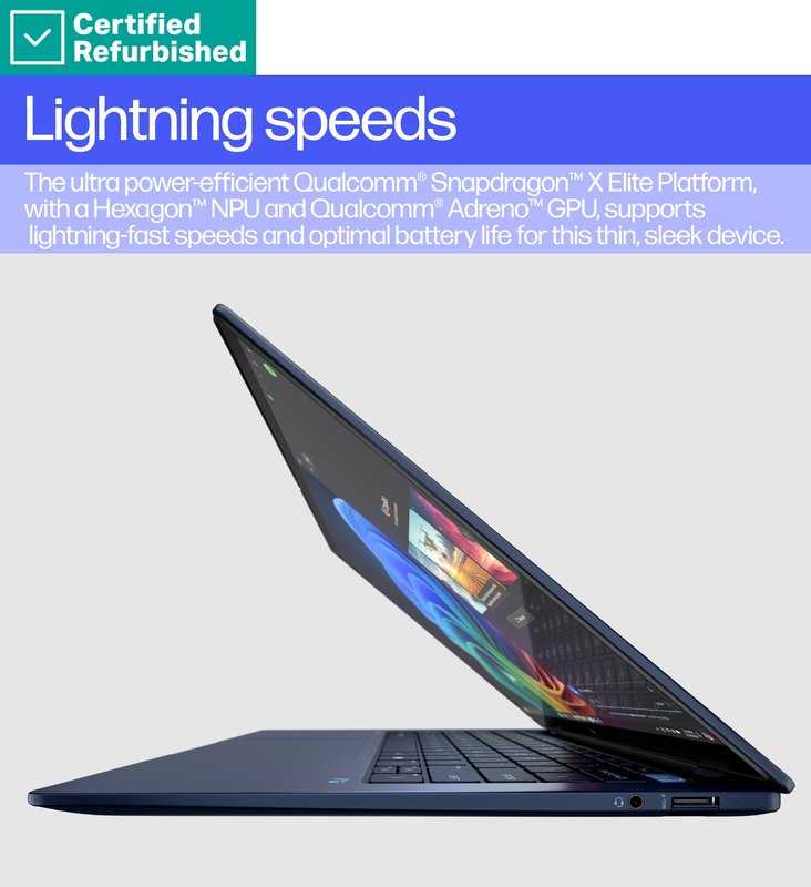 RENEW SILVER HP EliteBook Ultra G1q AI 14 - Qualcomm Snapdragon X Elite X1E-78-100, 16GB, 1TB SSD, 14 2.2K 400-nit Touch, 5MP IR cam, US backlit keyboard, Atmospheric Blue, 59Wh, Win 11 Pro, 1 years
