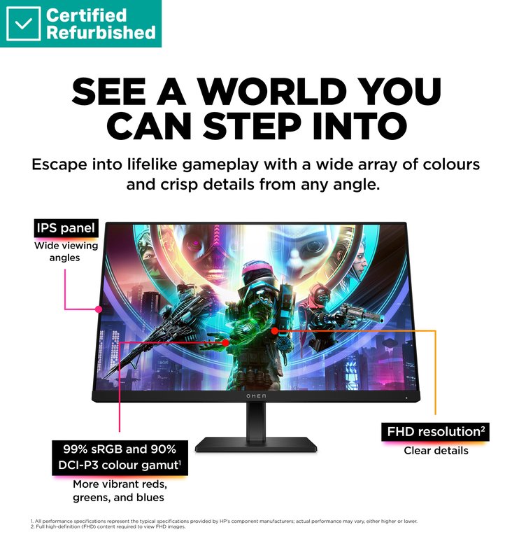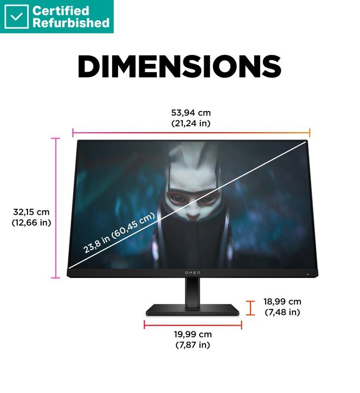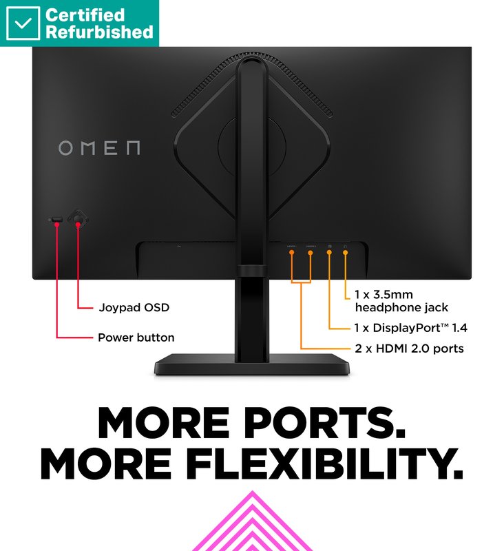 RENEW GOLD OMEN by HP 24 FHD Gaming Monitor - 23.8" 1920x1080 FHD 300-nit 165Hz AG, IPS, 2x HDMI/DisplayPort, height adjustable/tilt/pivot, 1 years