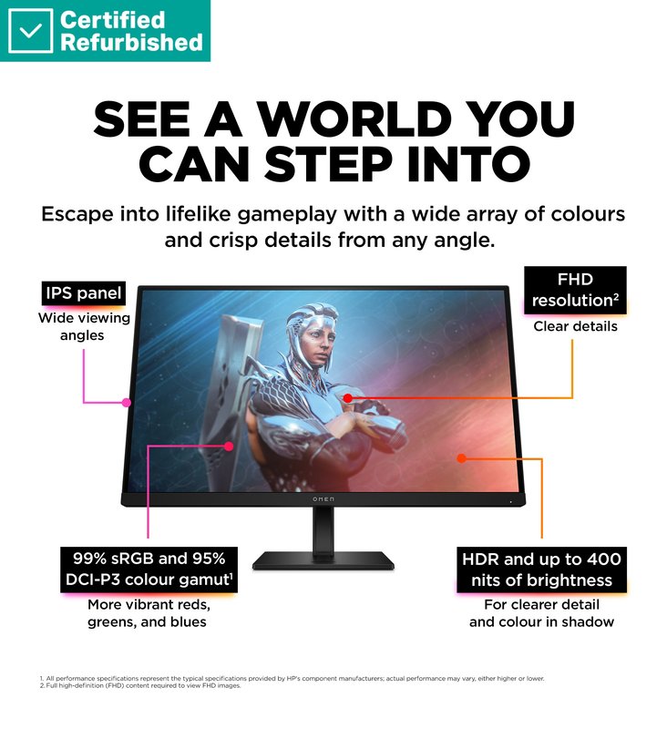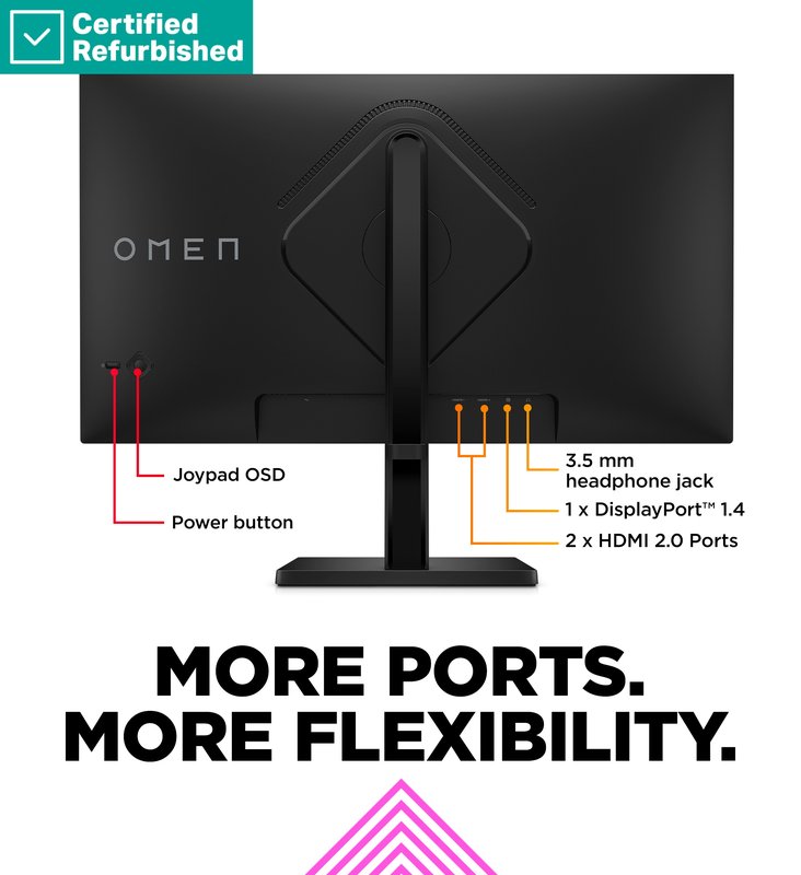 RENEW GOLD OMEN by HP 24 FHD Gaming Monitor - 23.8" 1920x1080 FHD 300-nit 165Hz AG, IPS, 2x HDMI/DisplayPort, height adjustable/tilt/pivot, 1 years