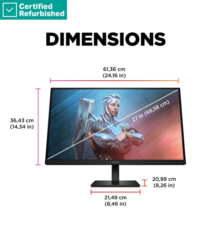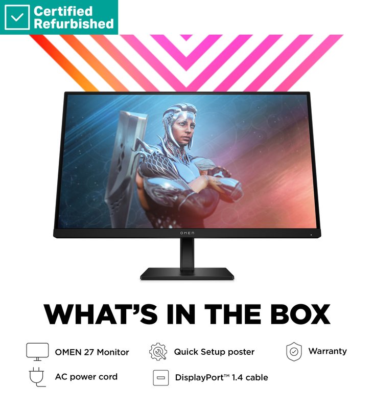 RENEW SILVER OMEN by HP 27 FHD Gaming Monitor - 27" 1920x1080 FHD 400-nit 165Hz AG, IPS HDR 400, 2x HDMI/DisplayPort, height adjustable/tilt/pivot, 1 years