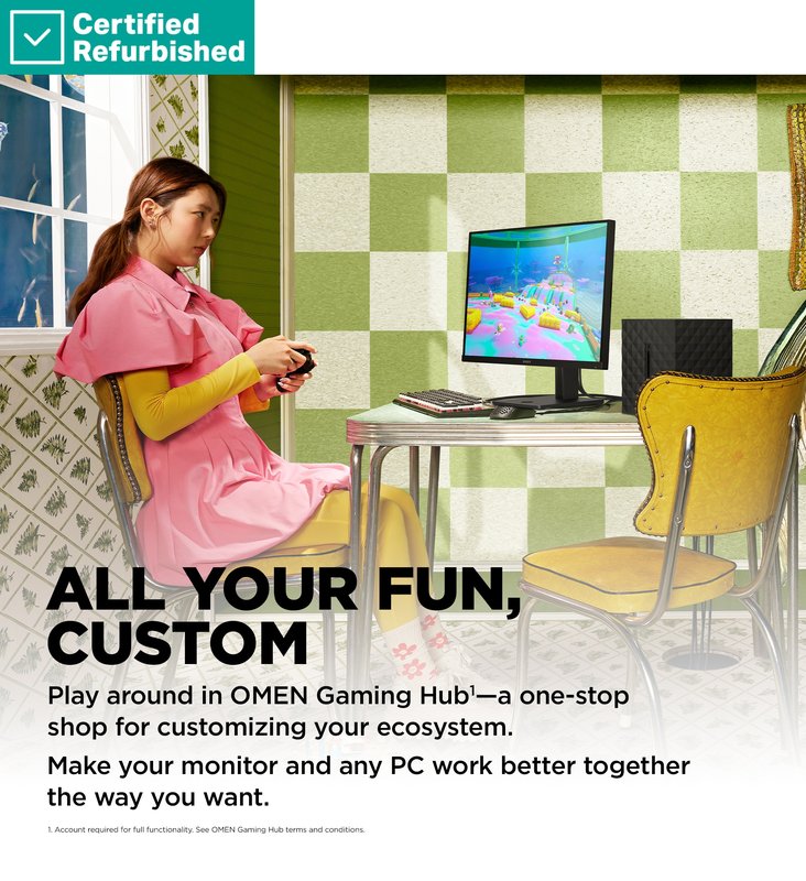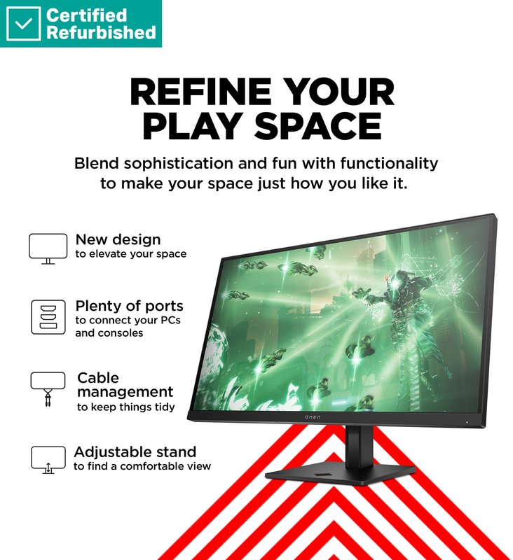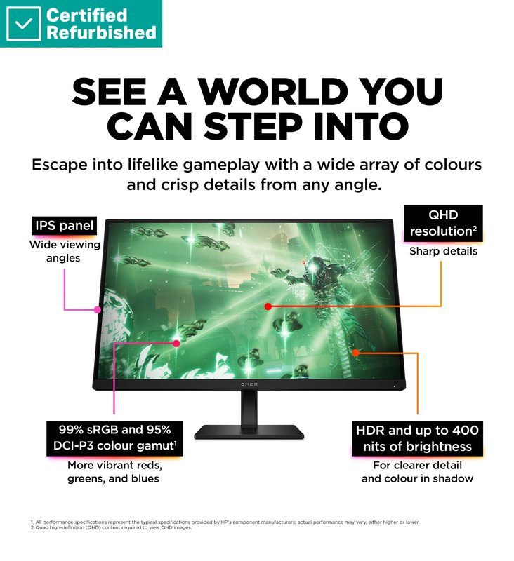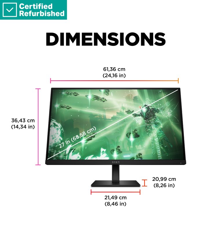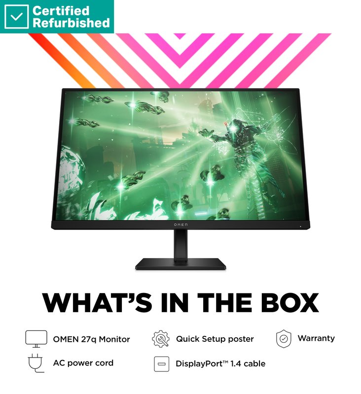 RENEW SILVER OMEN by HP 27q QHD Gaming Monitor - 27" 2560x1440 QHD 400-nit 165Hz AG, IPS HDR 400, 2x HDMI/DisplayPort, height adjustable/tilt/pivot, 1 years